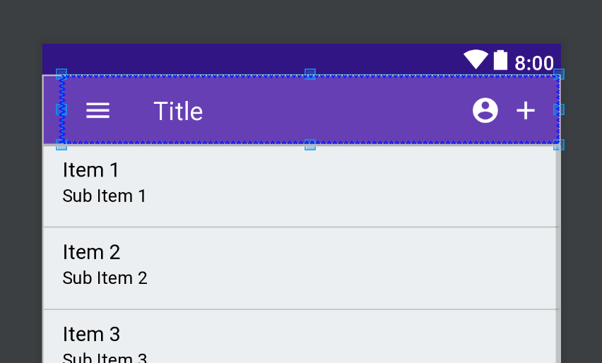 toolbar를 넣고자 하는 화면에 View Toolbar를 넣어줍니다.
