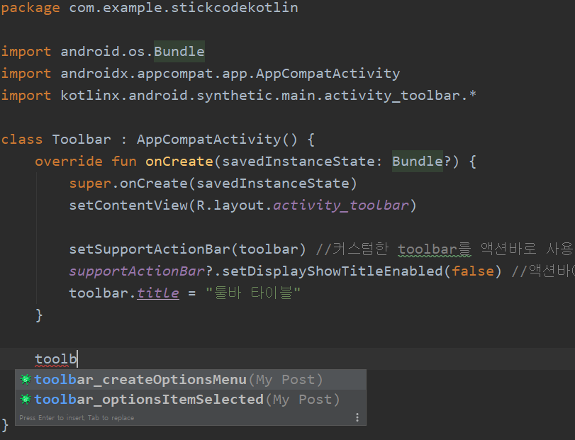 setSupportActionBar(toolbar) //커스텀한 toolbar를 액션바로 사용