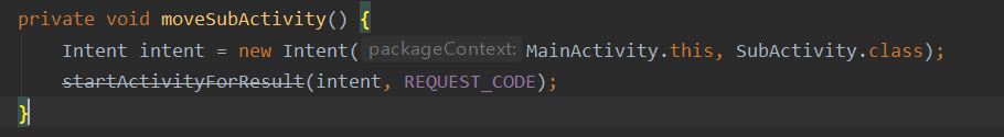 Intent intent = new Intent(MainActivity.this, SubActivity.class);