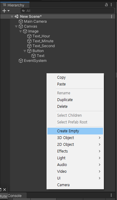 우선 Hierarchy에 캔버스를 만들고 그 안에 이미지를 만들어 타이머가 표시 될 도화지를 만들어 줍시다!