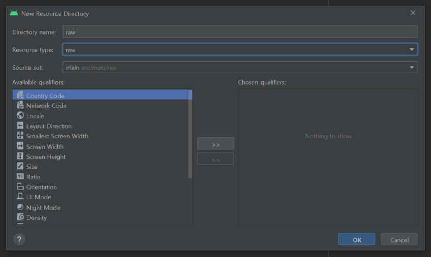 다음으로 Gif 파일을 넣기 위해서는 파일 경로가 일반적인 drawable 폴더가 아닌 raw 폴더에 있어야 합니다. 그러므로 [res] 폴더 아래에 [raw] 폴더를 하나 만들어 줍니다.