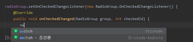 rad 까지 입력했을 때 나오는 radio group listener를 클릭하면,