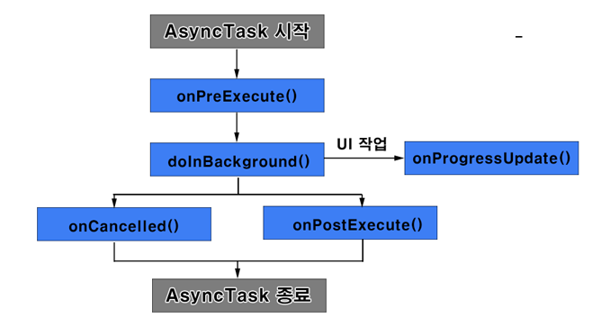 이 과정에서 AsyncTask 클래스가 가지고 있는 5가지 메소드를 살펴 볼 필요가 있다.