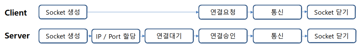 소켓 프로그램의 흐름은 아래 그림과 같이 진행이 됩니다.