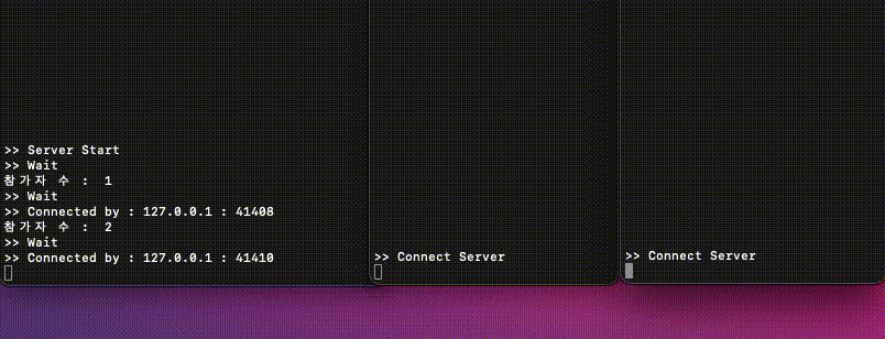 # 접속한 클라이언트마다 새로운 쓰레드가 생성되어 통신을 하게 됩니다.