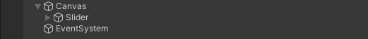 Slider를 만들면 Canvas와 EventSystem이 같이 생성되는 것을 확인하실수 있고 Canvas 하위 객체로 Slider가 만들어 진걸 보실 수 있습니다! 이제 이걸 하셨다면 체력바만들기 절반은 끝난 것 입니다.!!