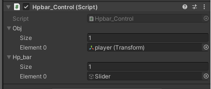 Inpector 창에서도 플레이어 오브젝트와 Slider를 지정해 주었고요.