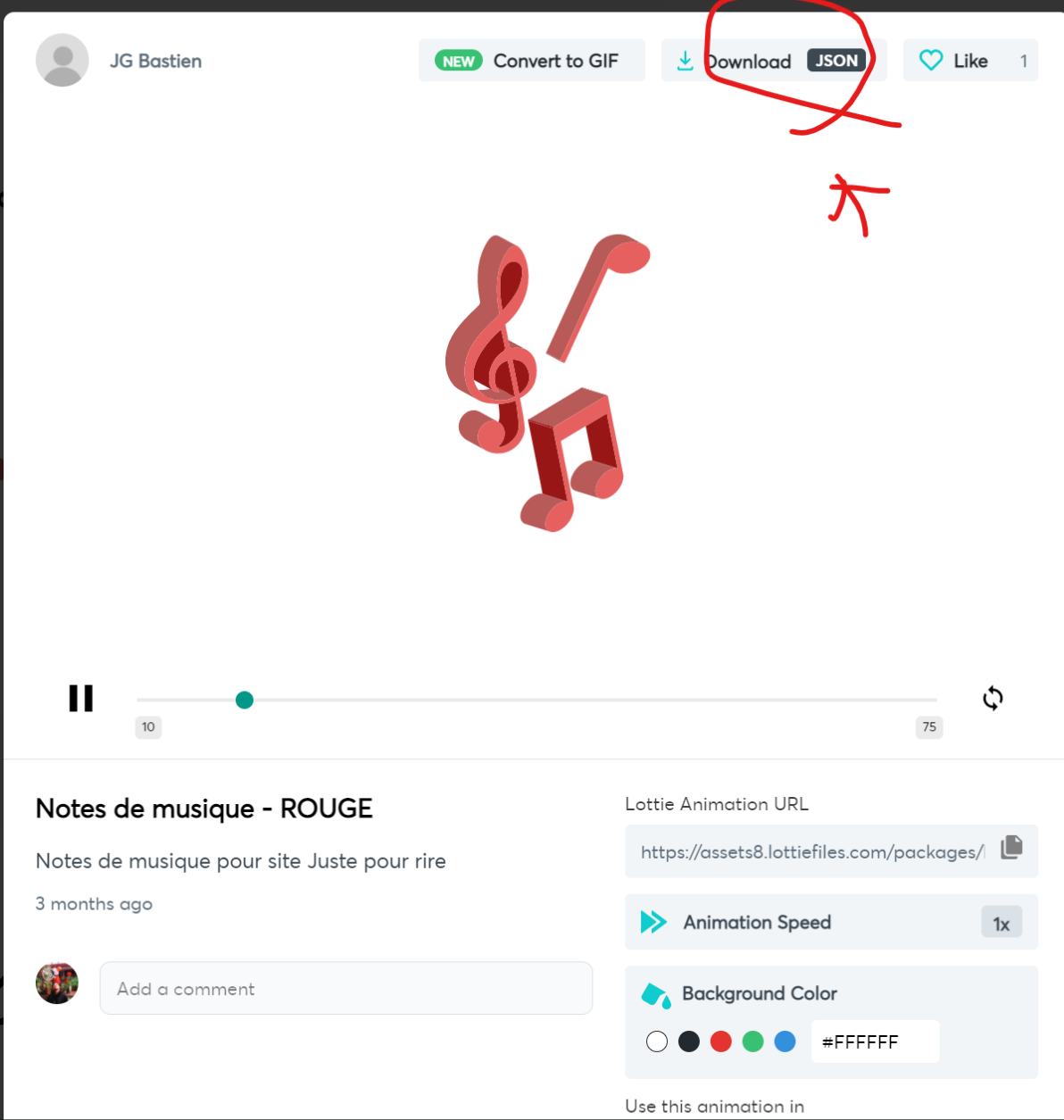 이렇게 준비하신 파일을 html, javascript에 아래처럼 작성해주시면 Lottie를 작성할 수 있습니다.