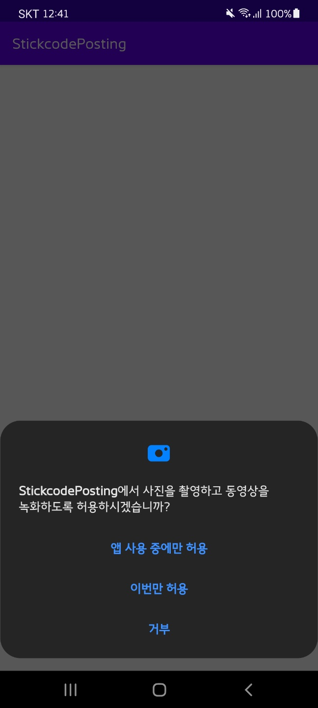 처음 앱을 빌드하면 권한이 설정되어 있지 않기 때문에, onRequestPermissionsResult()를 통해서 앱 실행에 필요한 권한을 사용자에게 요청합니다.