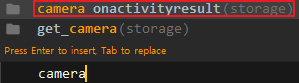 camera_onactivityresult를 선택하면 아래의 코드가 자동완성되는 걸 볼 수 있습니다.