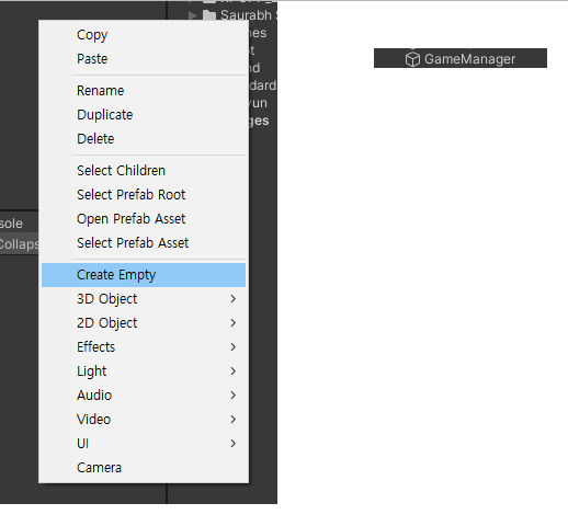 여기까지 만들었으니 이제 카메라 무빙을 관리할 GameManager 오브젝트를 만들고 그오브젝트에 스크립트를 연결 시켜서 카메라 무빙을 구현해 주도록 하겠습니다.