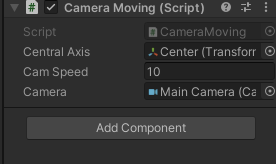 카메라 스피드 변수는 원하는 숫자를 입력해서 카메라가 어느 속도록 움질일지에대해 정해주면 되겠습니다!! 저는 10을 주겠습니다.