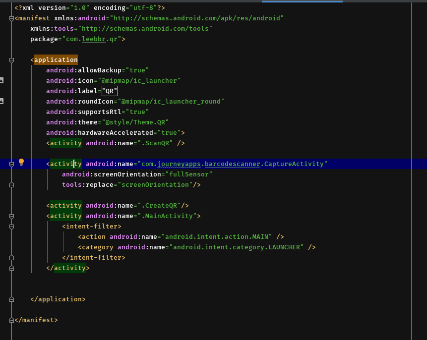 <activity android:name="com.journeyapps.barcodescanner.CaptureActivity"