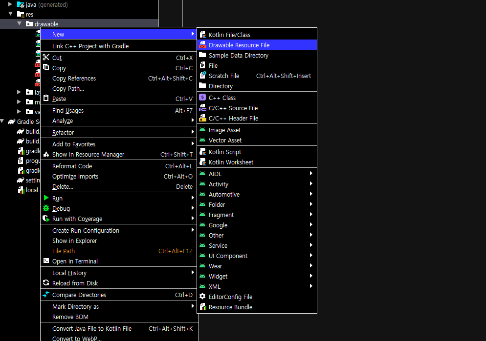 1. drawble-new-Drawble Resource File을 클릭한다.