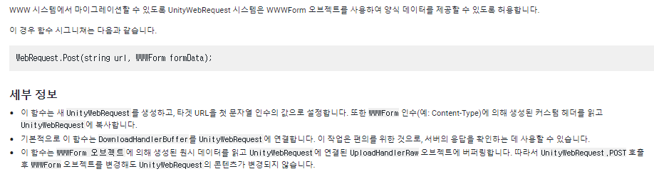 https://docs.unity3d.com/kr/2018.4/Manual/UnityWebRequest-SendingForm.html
