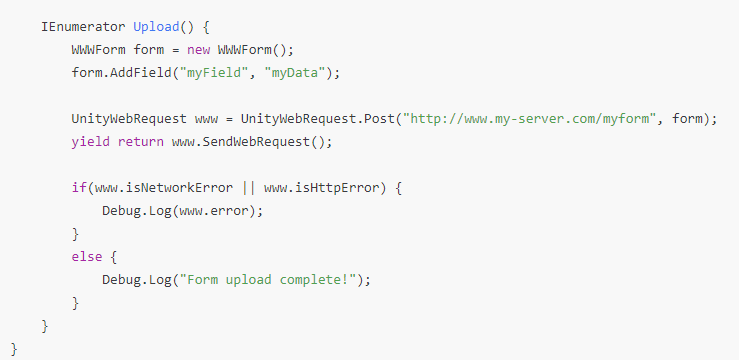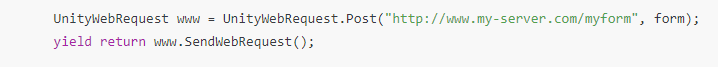 UnityWebRequest www = UnityWebRequest.Post("http://www.my-server.com/myform", form);