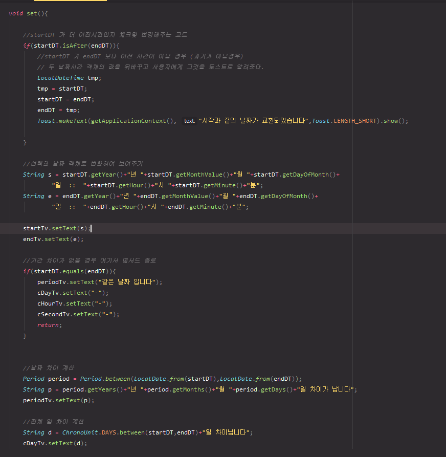 //startDT가 endDT보다 이후 시간인지 확인한다.