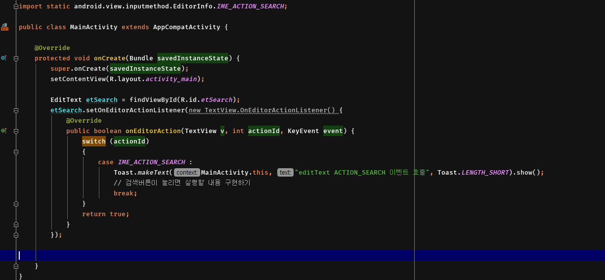 3. onEditorAction() 메소드 내에 조건을 주고, 원하는 이벤트를 작성한다.