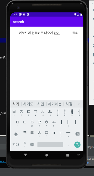 위와 같이 키보드에 검색버튼이 나온것을 볼 수 있습니다.
