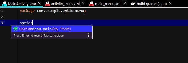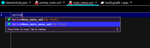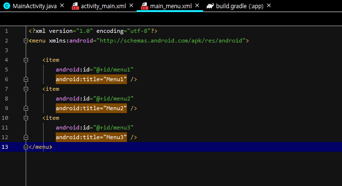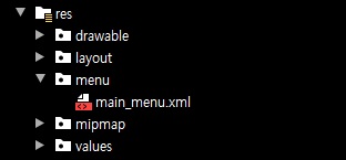 res에서 menu 폴더를 만들어서 main_menu 파일을 만들어주세요.