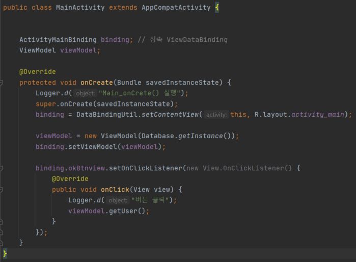ActivityMainBinding binding; // 상속 ViewDataBinding