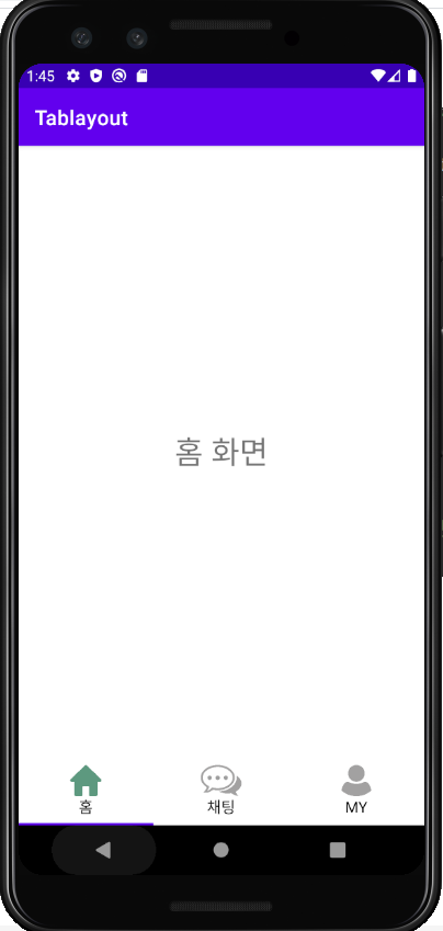 결과 화면에서 보았듯이 홈 ,채팅 ,마이페이지를 슬라이드 또는 메뉴 선택을 통한 페이지전환을 구현해보도록 하겠습니다.