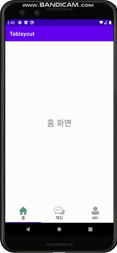 실행 후 3개의 메뉴 및 3개의 페이지로 구성된 뷰페이저가 완성되었습니다!