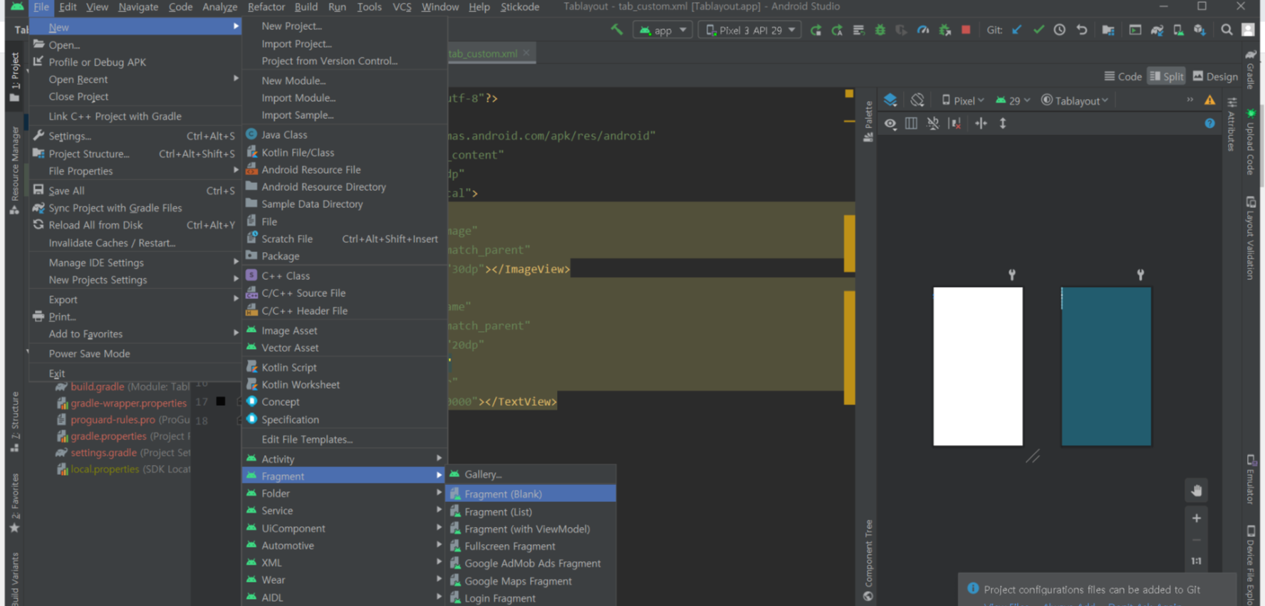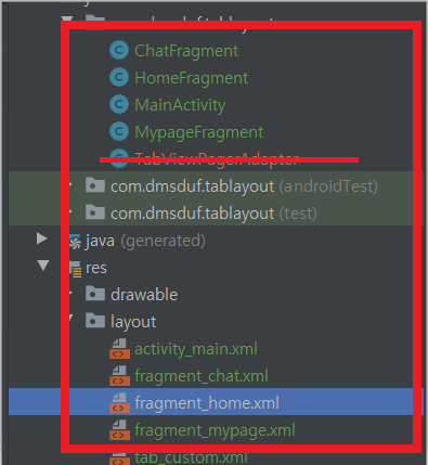 4)탭 메뉴 선택시 띄워질 페이지(홈,채팅,마이페이지) 만들기 (3 Fragments)