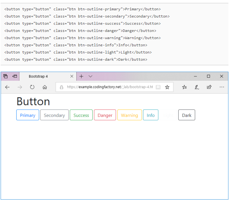 다음으로는 outline 문자열을 추가하여 흰 배경에 테두리가 있는 버튼을 만들 수 있습니다.