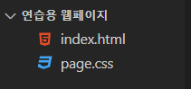 [연습용 웹페이지] 라는 폴더 안에 index.html 파일과 page.css라는 파일이 같이 들어있습니다.