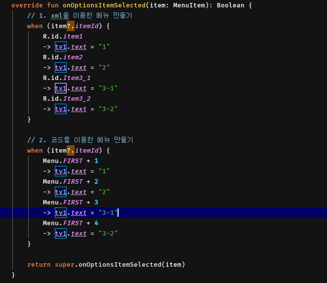 6. 스틱코드를 활용하여 onOptionsItemSelected 작성하기