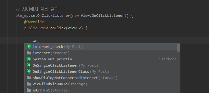 버튼의 클릭 리스너를 생성하고, 서버와 통신을 진행해 보도록 하겠습니다.