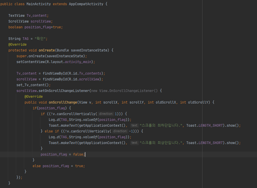 scrollView.setOnScrollChangeListener : 스크롤 감지