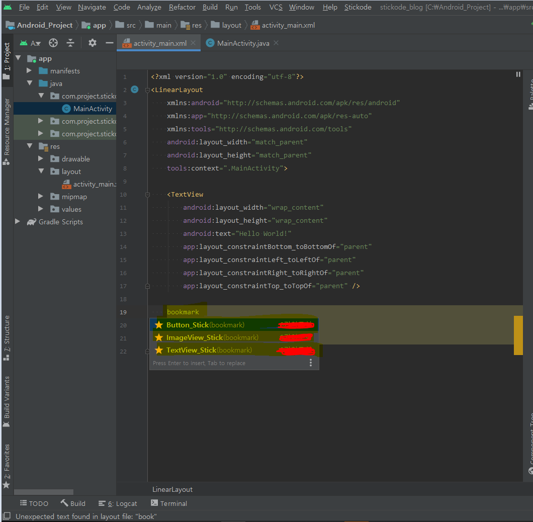 activity_main.xml 레이아웃 전체 코드