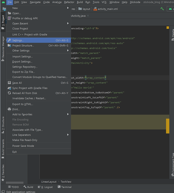 안드로이드 스튜디오 세팅 단축키: ctrl + alt + s