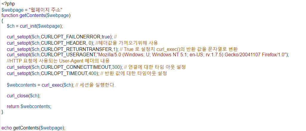위의 포스트를 즐겨찾기 하시면 'Curl_getWebpage' 를 입력하여, 해당 코드를 사용할 수 있습니다.