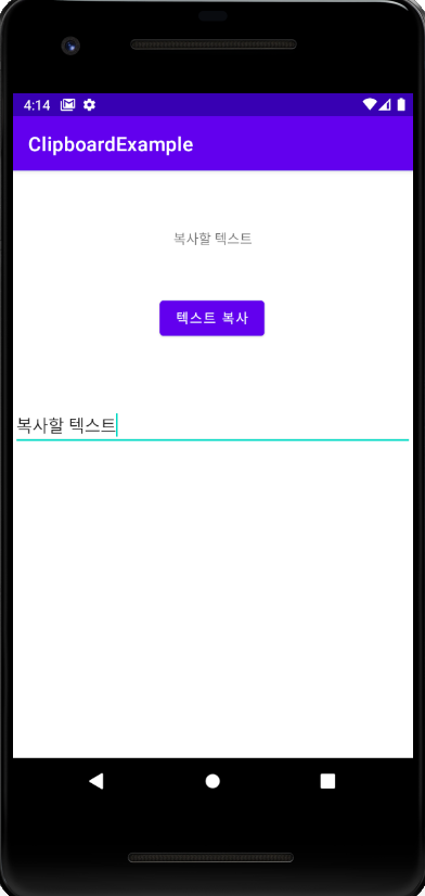 이 게시글에서는 텍스트를 클립보드에 복사하고 에디트 텍스트에 붙혀넣기를 해보겠습니다.
