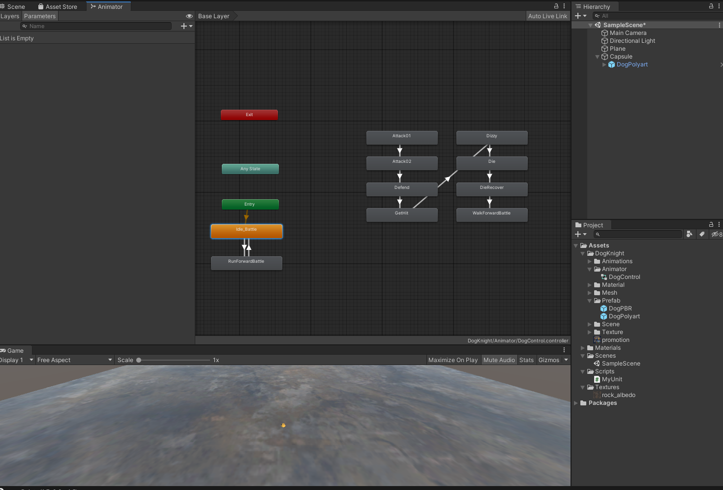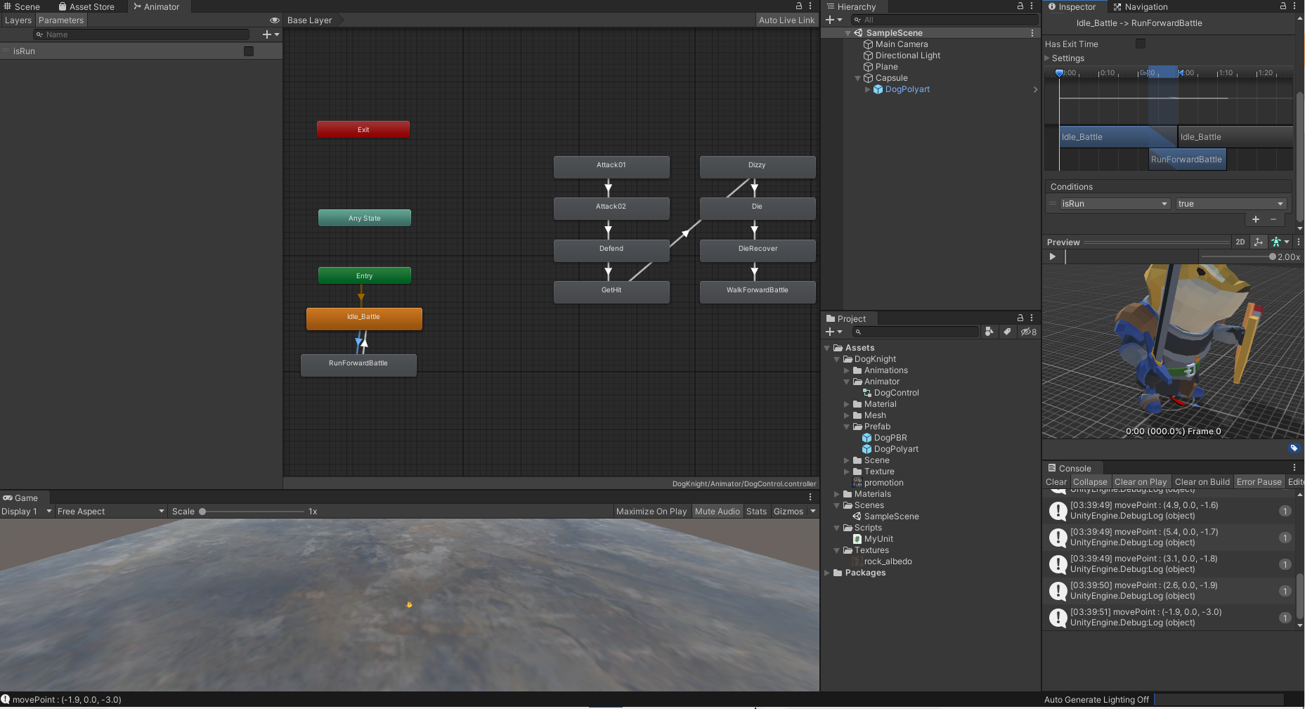 캐릭터는 DogKnight 폴더 - Prefab 폴더에 들어있습니다.