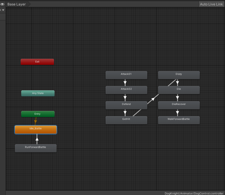 Animator 설정 화면에서 오늘 사용할 동작은 Idel_Battle 과 RunForwardBattle 두가지입니다.