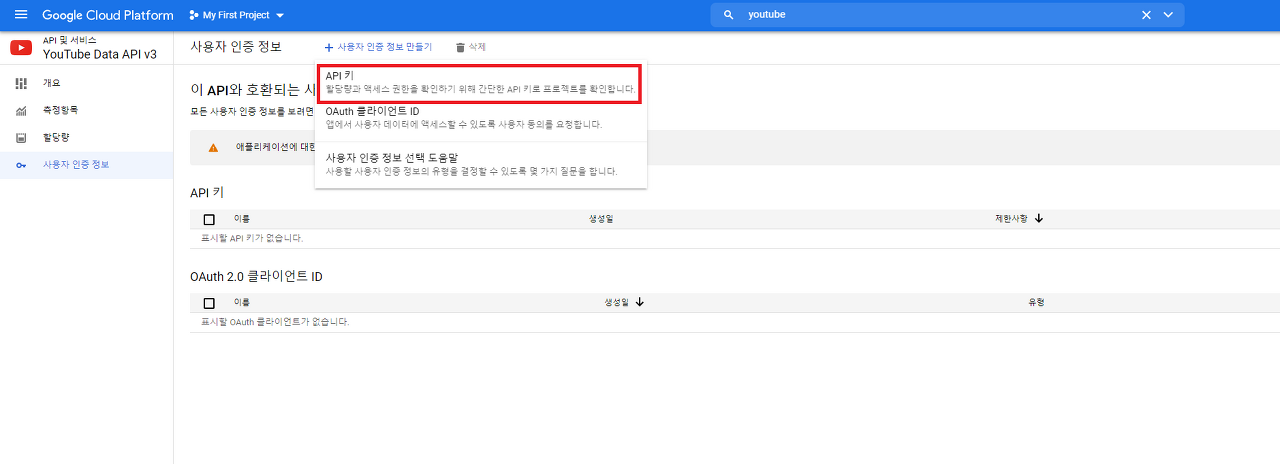 이번에는 유튜브 API 를 사용해보겠습니다.