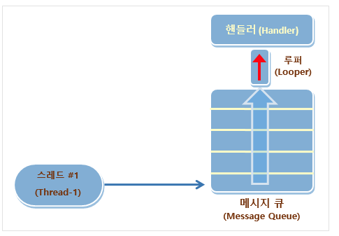 해결할수 있습니다. 메인 쓰레드 안에 핸들러를 만들어 놓으면 다른 스레드에서는 특정작업을 먼저 핸들러에게 요청합니다.