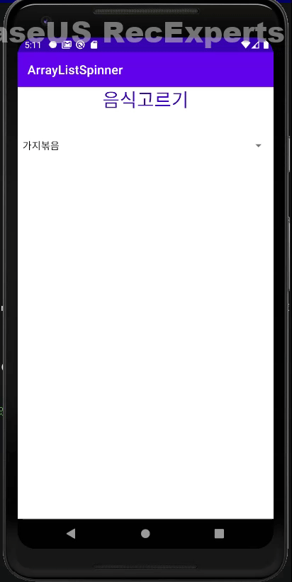 4. spinner에 클릭리스너를 달아주고 클릭되었을 때 토스트메시지를 띄워줍니다.