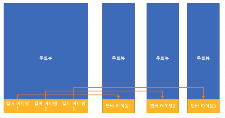 다음과 같이 저희도 3개의 탭을 가진 화면을 구성하겠습니다.