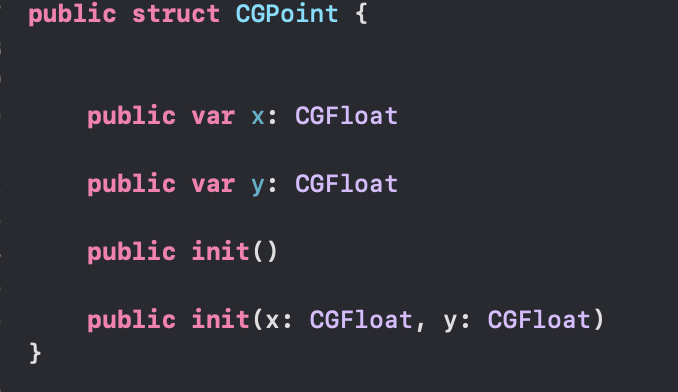이게 무슨 말인지 모르겠으면 Xcode 에서 CGPoint를 입력한 후 command 버튼을 누른 상태로 마우스로 클릭을 하면