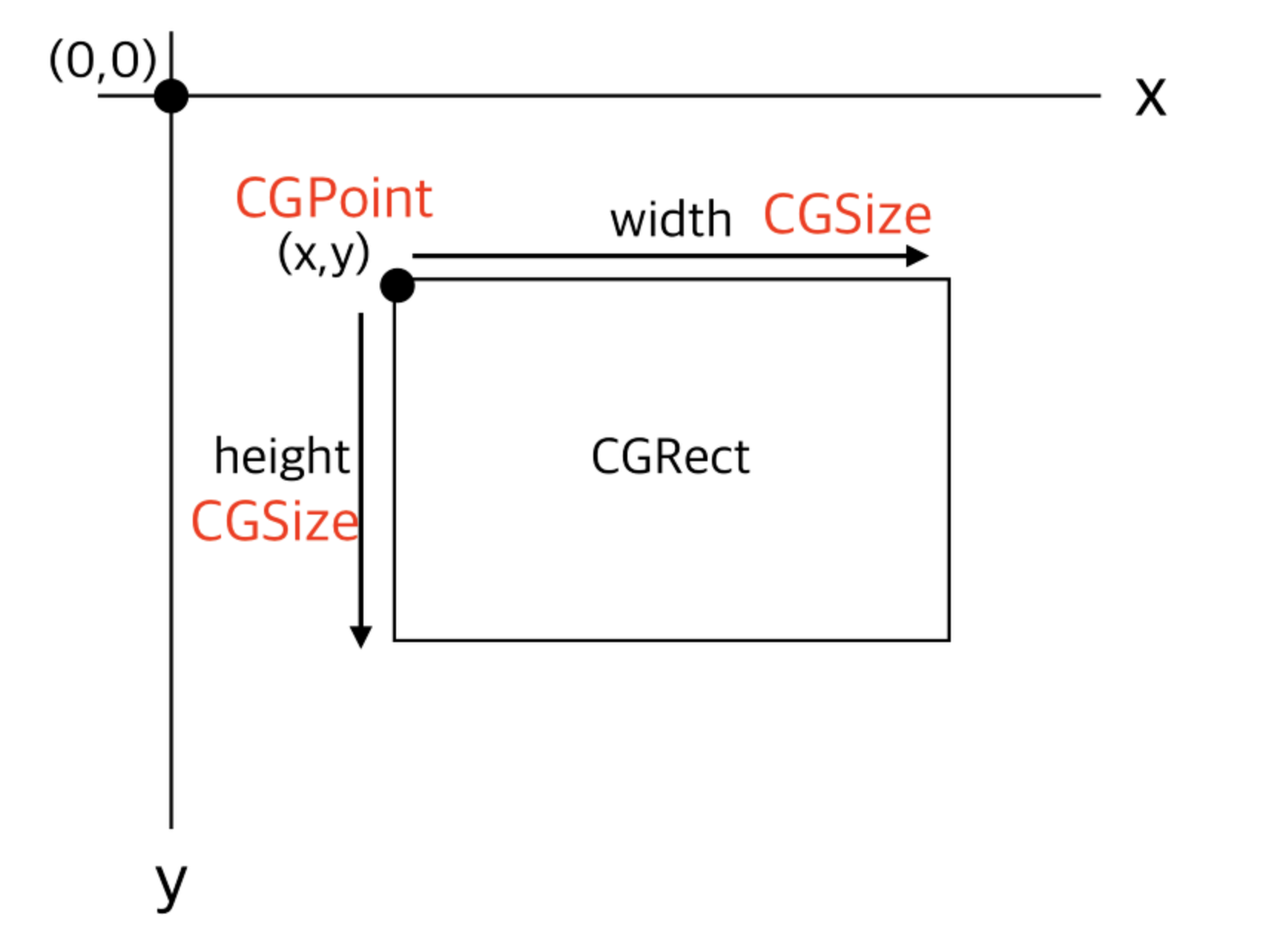 이 둘을 포함하여 위치와 크기를 포함하기 위한것이 CGRect 입니다.