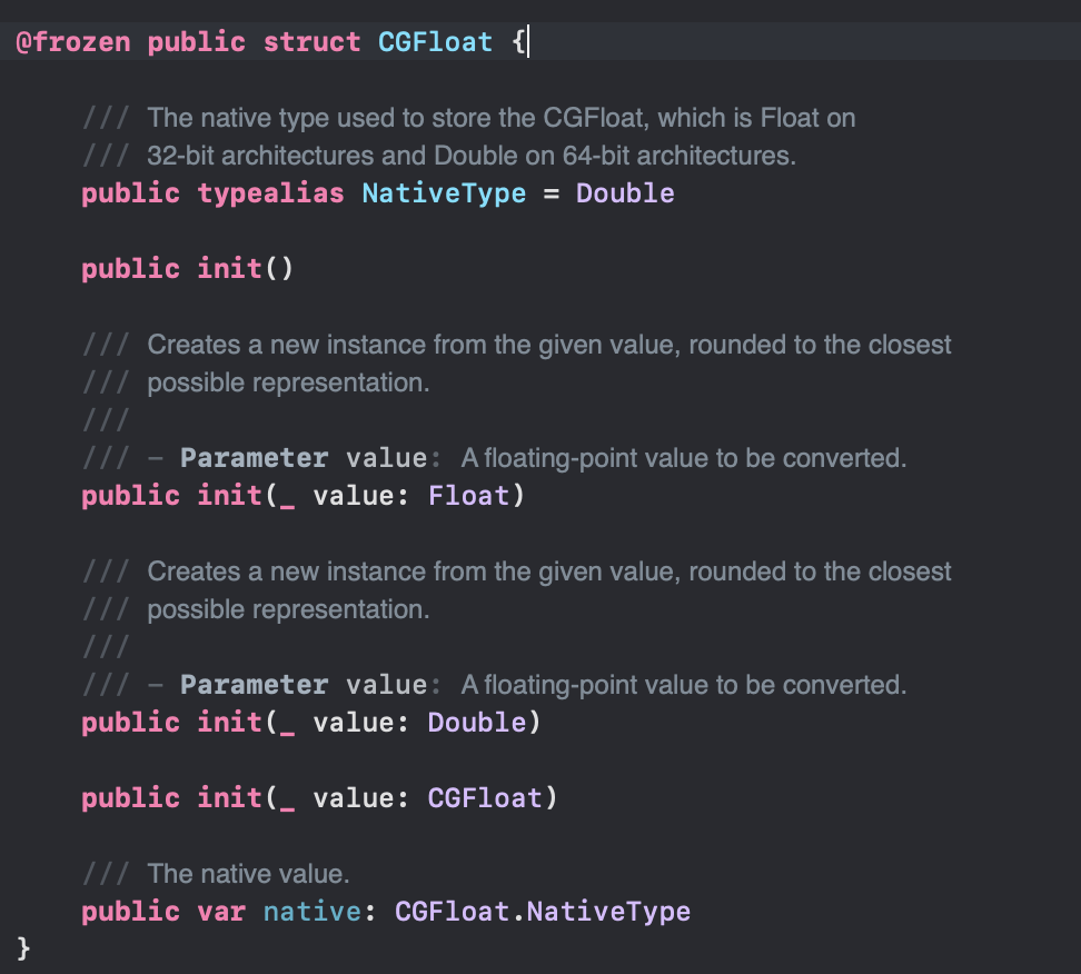 CGFloat의 타입으로 이루어진 구조체 인걸 확인할 수 있는데요 Float과 CGFloat은 뭐가 다른걸까요?