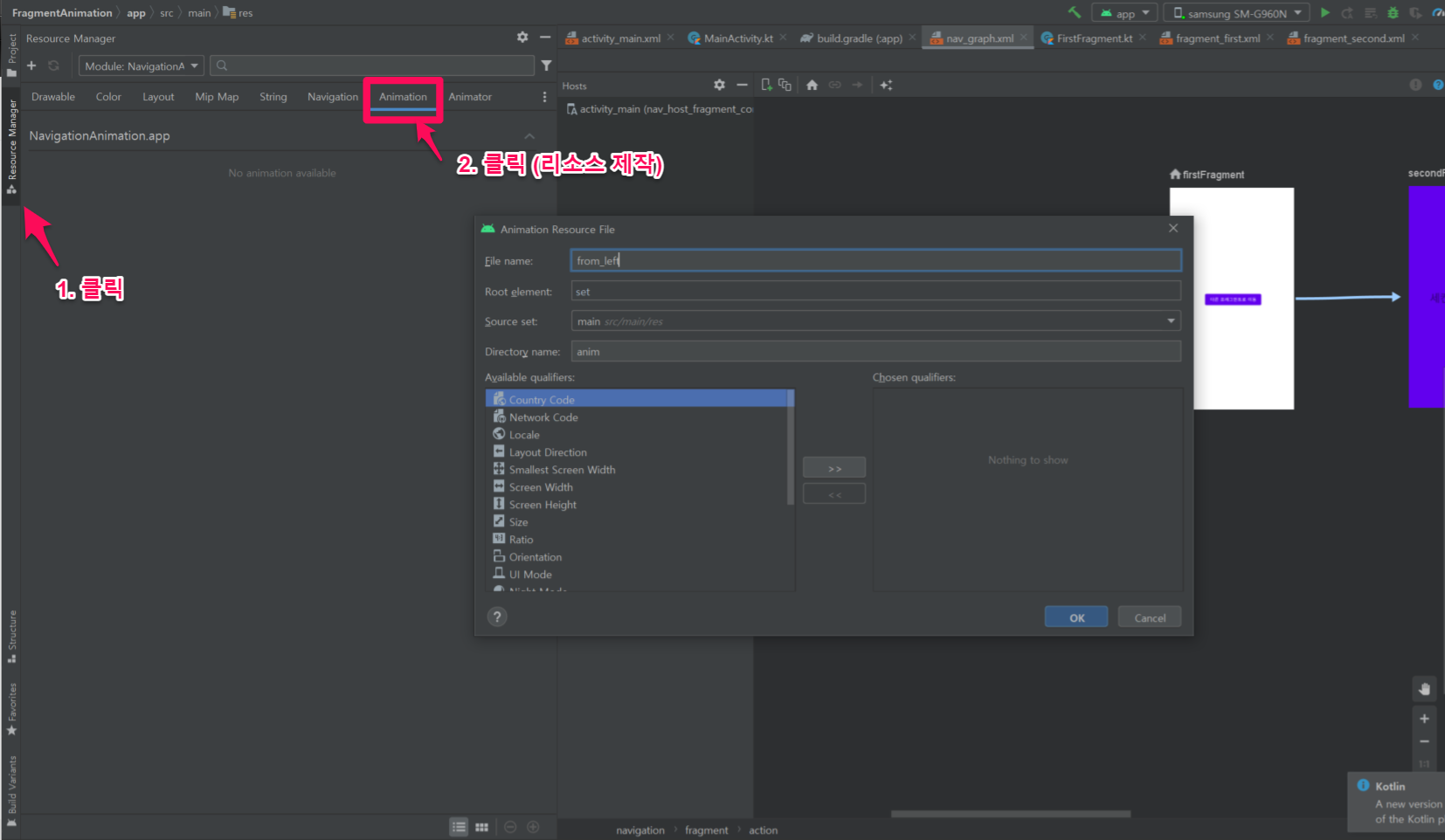 안녕하세요. 이번 시간에는 Navigation Component로 Fragment간 화면을 전환할 때 Fragment의 애니메이션을 적용해보도록 하겠습니다.