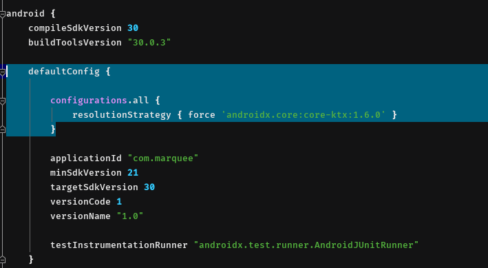 resolutionStrategy { force 'androidx.core:core-ktx:1.6.0' }