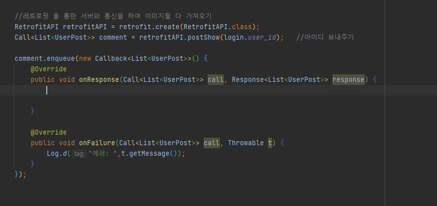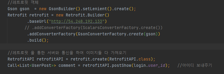 이렇게 메인 문에서 선언을 해주시면 retforit을 본인이 원하는 데이터 형태로 서버로 부터 받아 올 수 있습니다.