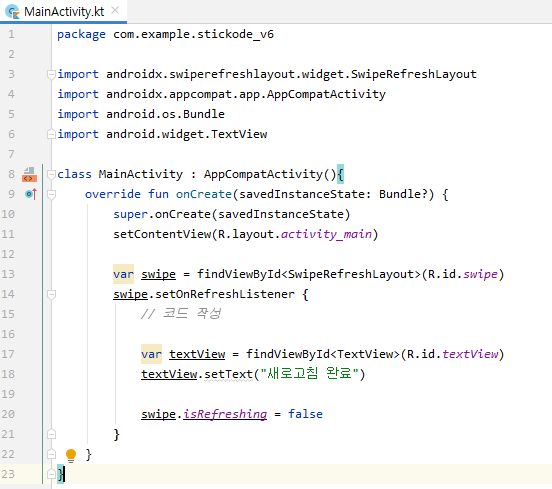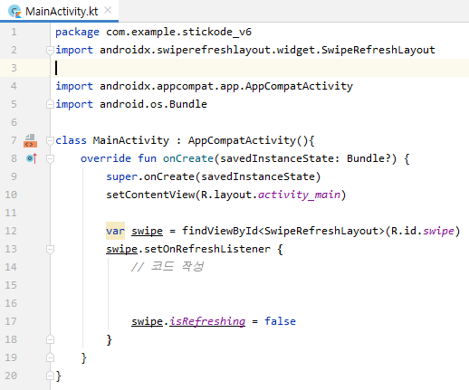 var swipe = findViewById<SwipeRefreshLayout>(R.id.swipe)
